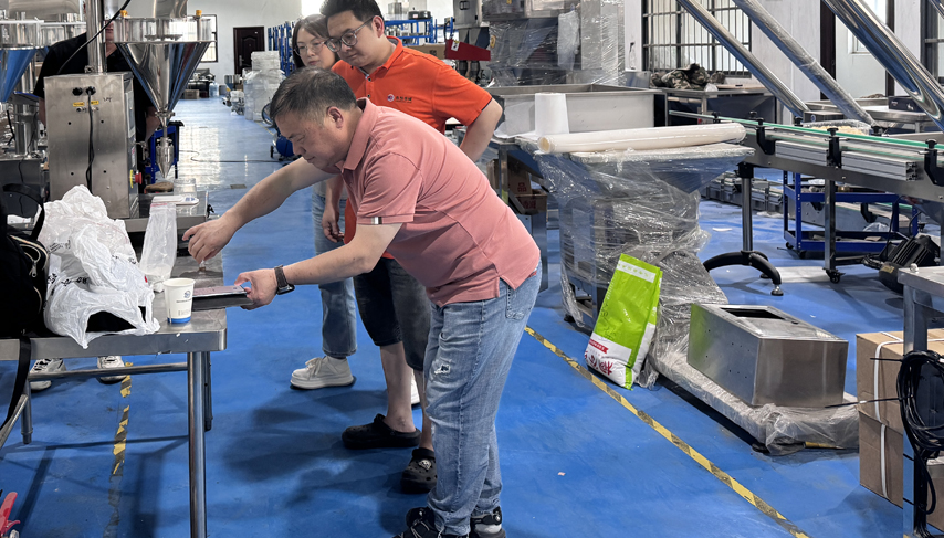 商丘客戶兩臺花生包裝機調試現場